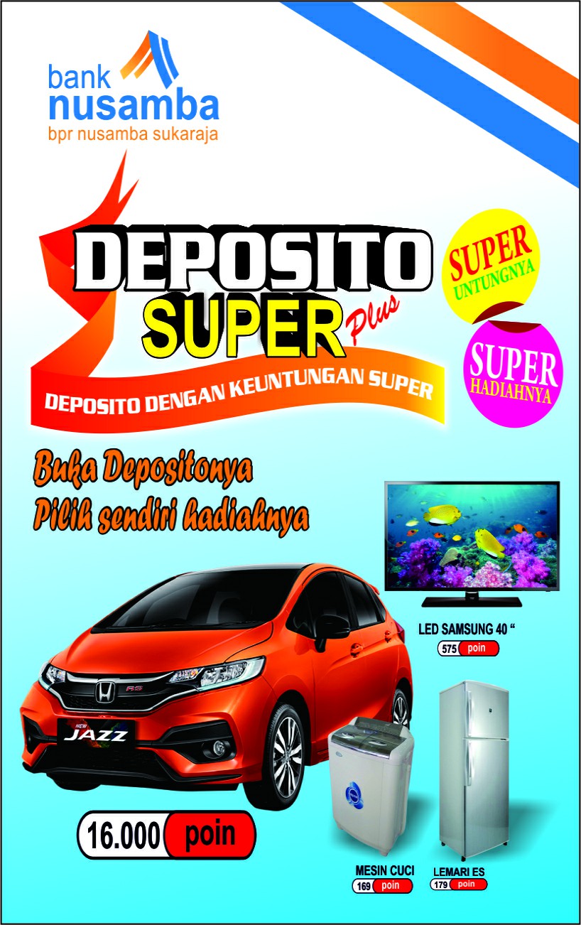Deposito Super Plus Deposito dengan keuntungan Super Buka Depositonya Pilih Sendiri Hadiahnya SUPER UNTUNGNYA SUPER HADIAHNYA PAJAK HADIAH DITANGGUNG BPR
